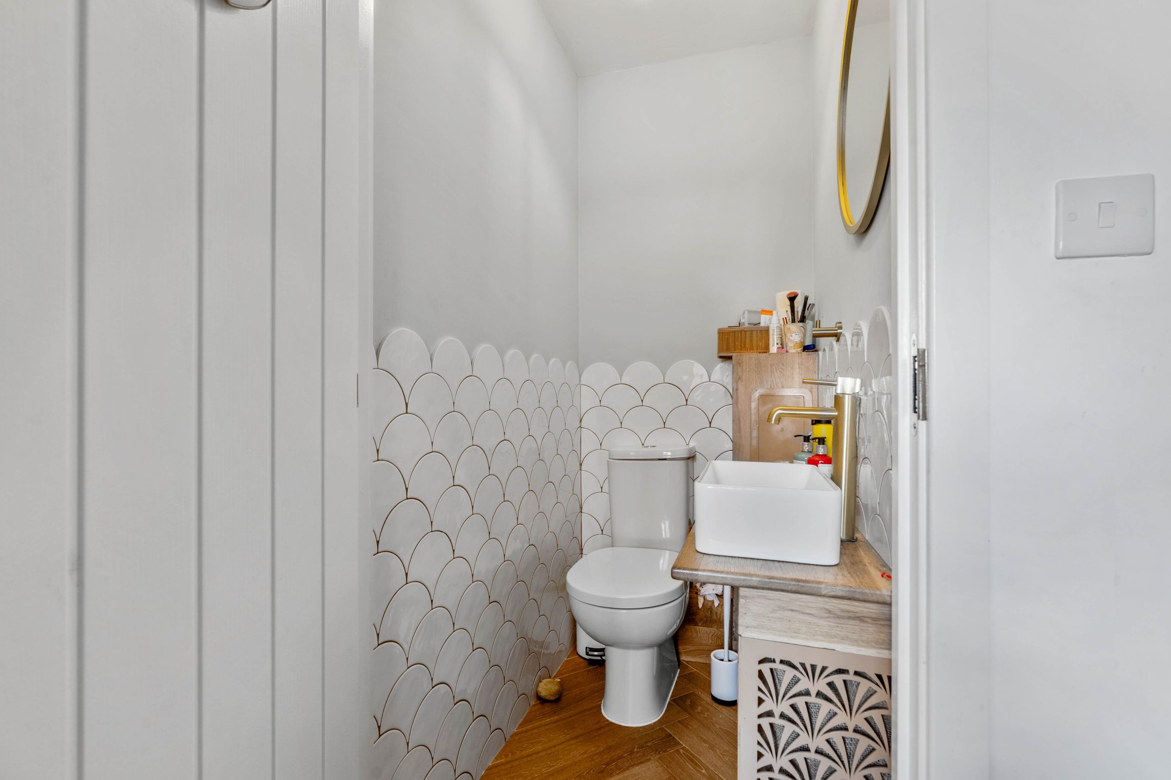 There is a modern downstairs WC and wash hand basin with vanity unit off the hallway and internal door provides access into a large utility area with ample space and plumbing for washing machine and tumble dryer.