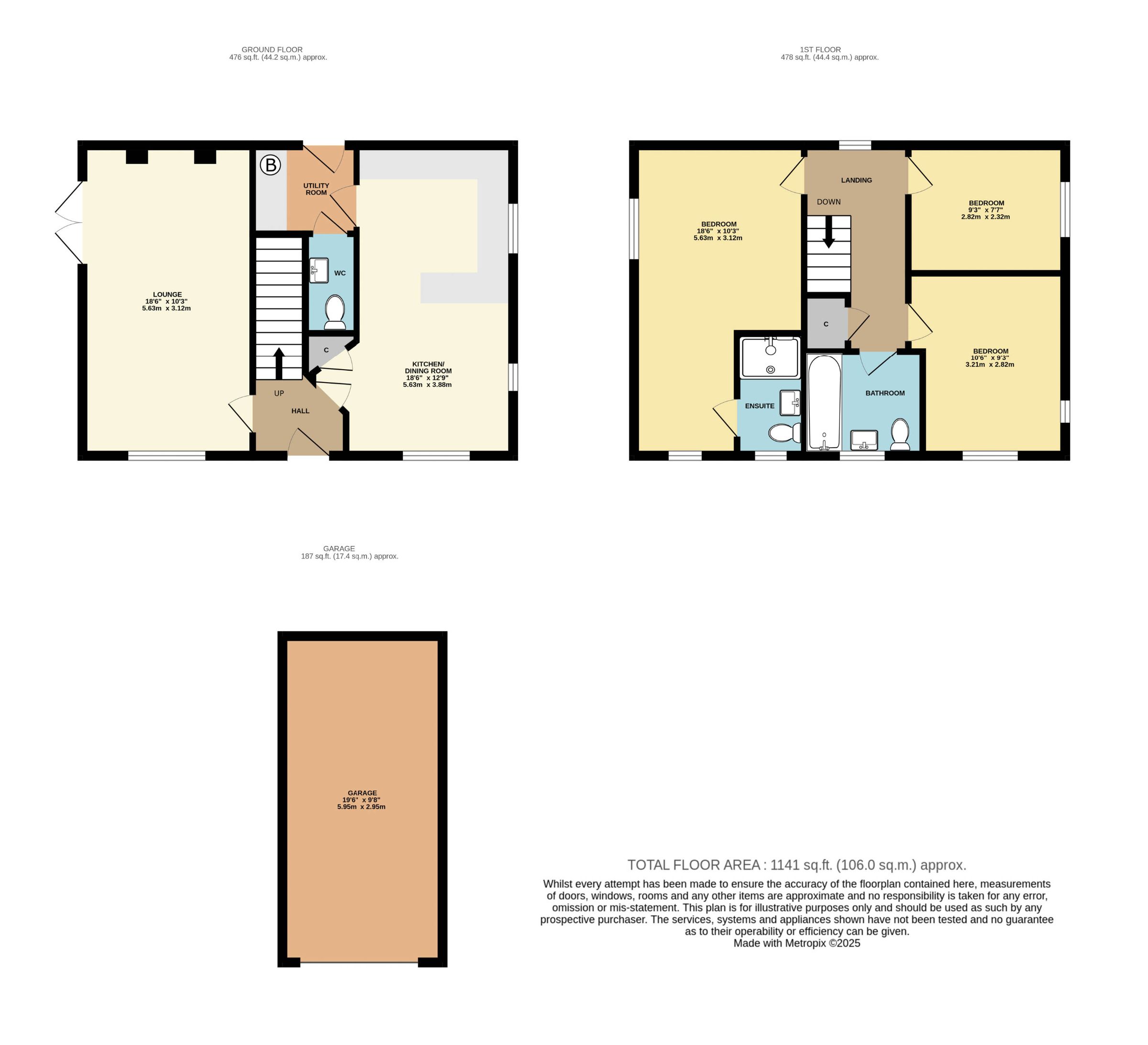 Garage w: 2.95m x l: 5.94m (w: 9' 8" x l: 19' 6")